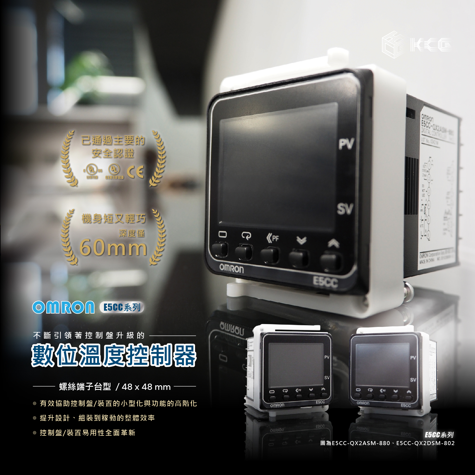 #OMRON #歐姆龍 #E5CC #數位溫度控制器 E5CC 機身輕巧,深度僅有60mm(螺絲端子台型),並採用大型白色PV顯示器來提高辨識 配備多個輸出入點,功能/性能豐富,透過無程式通訊方式,輕鬆連接PLC,應用層面大幅提升