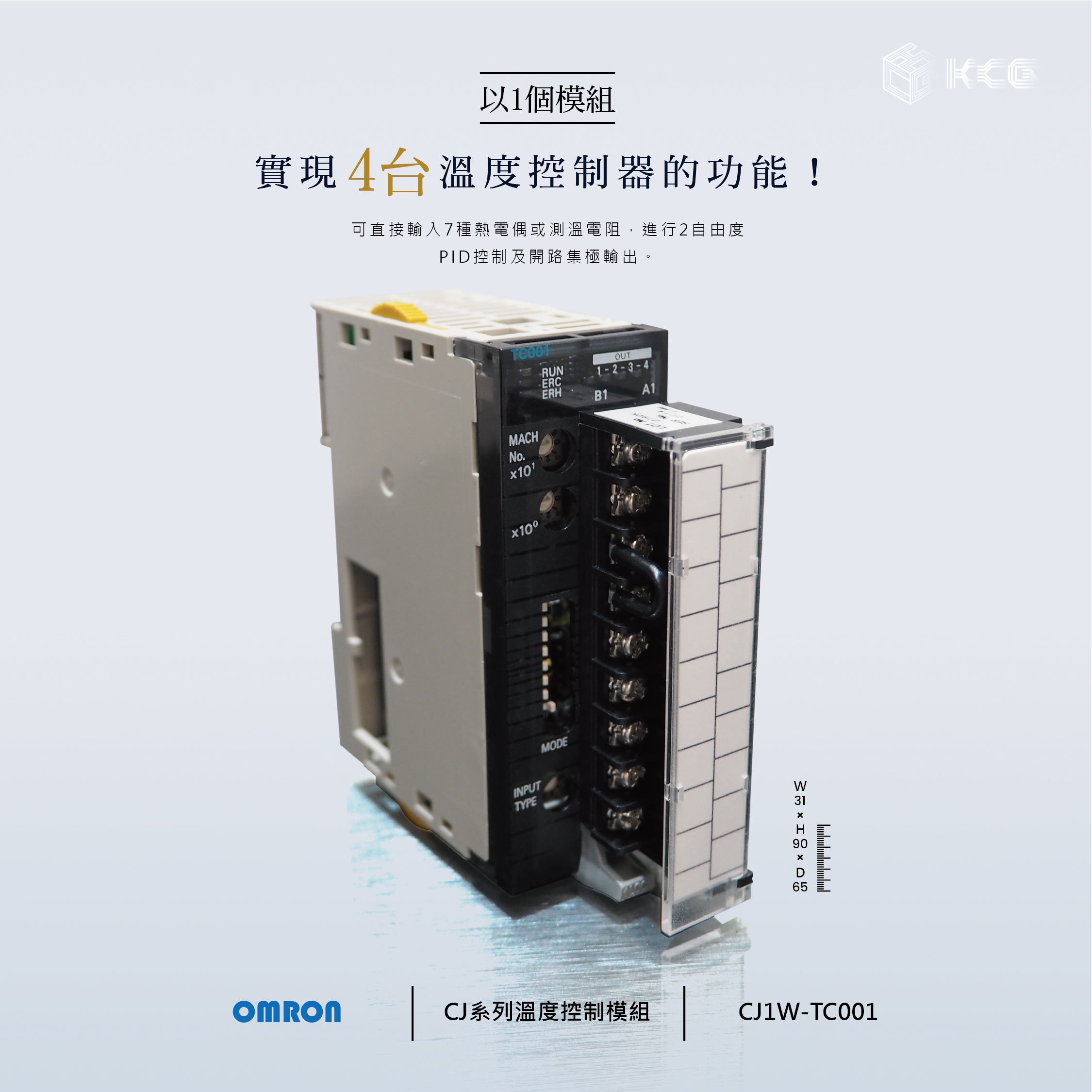 『CJ1W-TC』以1個模組實現4台溫度控制器的功能,可直接輸入熱電偶或測溫電阻,進行2自由度PID控制。