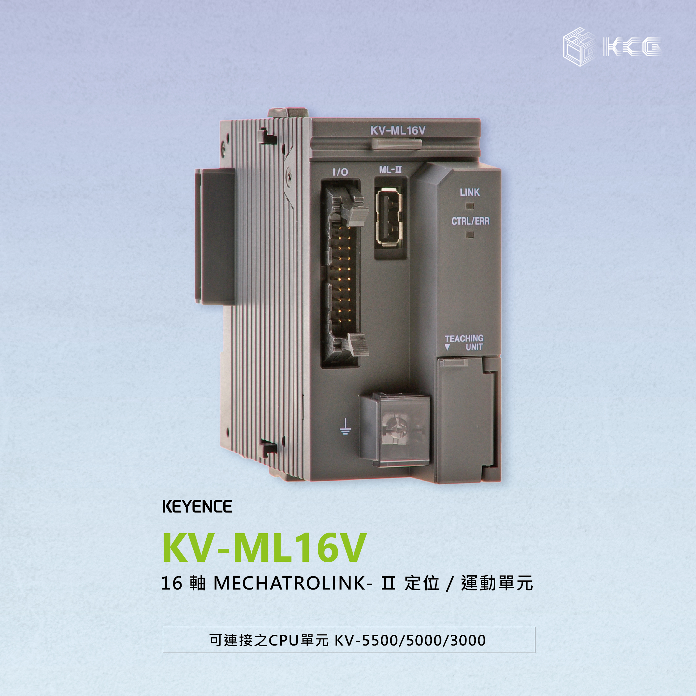 約220g | 16 軸 (含假想軸) | 可連接之 CPU 單元KV-5500/5000/3000